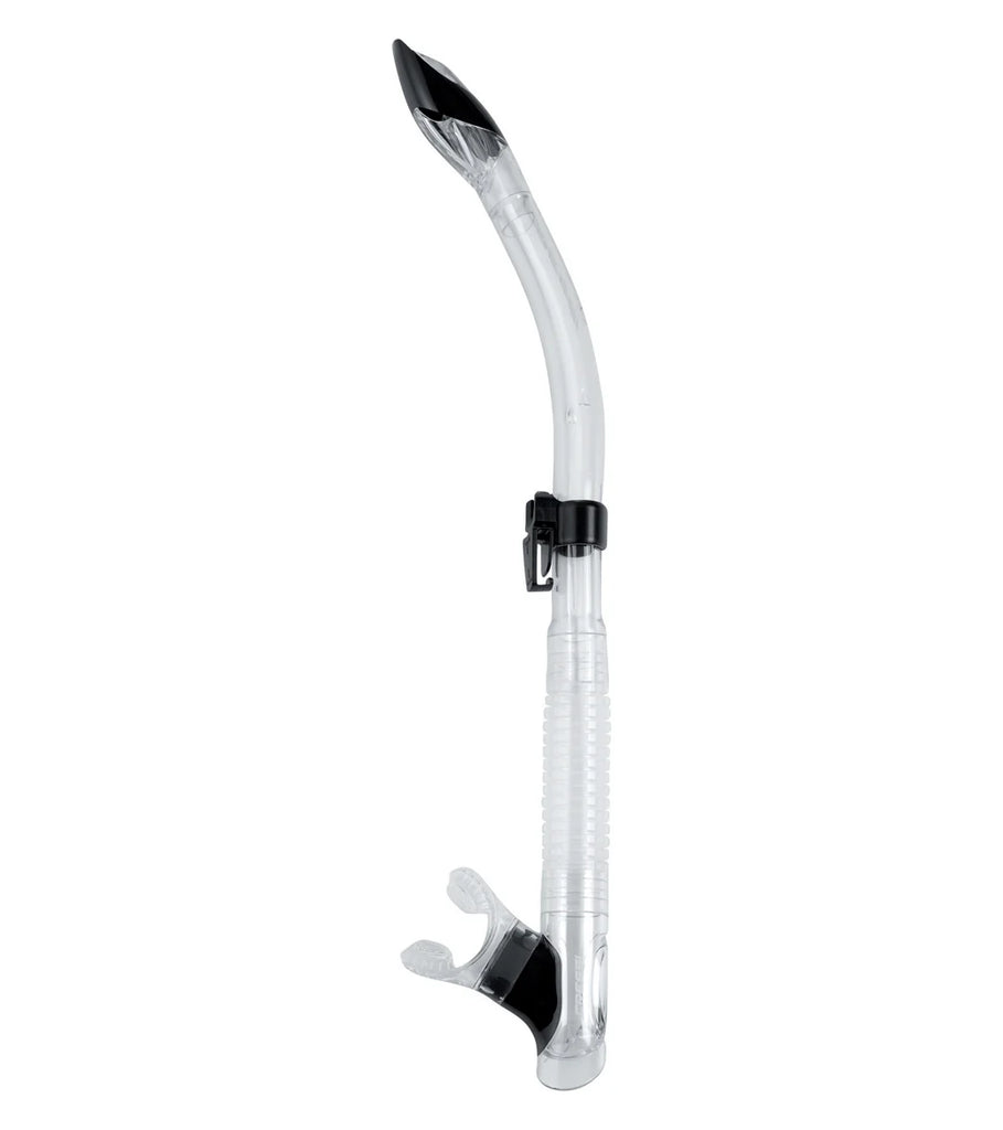 The top Splash Guard is designed to reduce water intake. A generous bore contoured tube provides ample airflow and a lower purge valve enables instant clearing when needed.